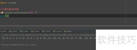 8、 将2018年2月按周划分生成日历列表并输出,结果显示每月各周的日期分布情况。
