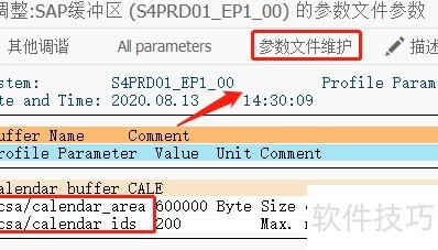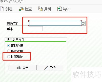 5、 输入两行参数名称后,点击顶部参数文件维护按钮进行操作。