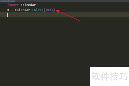 4、 继续输入x = calendar.isleap(2021),然后按回车键执行命令。