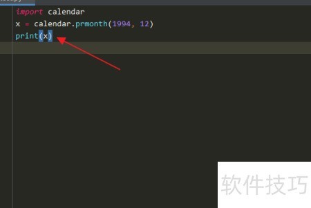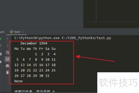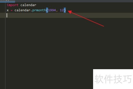 4、 输入x = calendar.prmonth(1994, 12),然后按回车键执行。