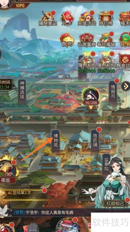 2、 进入神都页面后,点击博物苑图标即可。