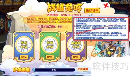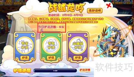 2、 每日可进行六次护法,每次可选择不同护法。