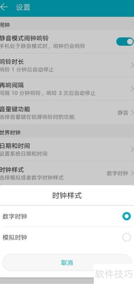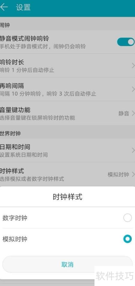 6、 选择后自动返回设置页面,时钟样式已切换为模拟时钟,配置完成。