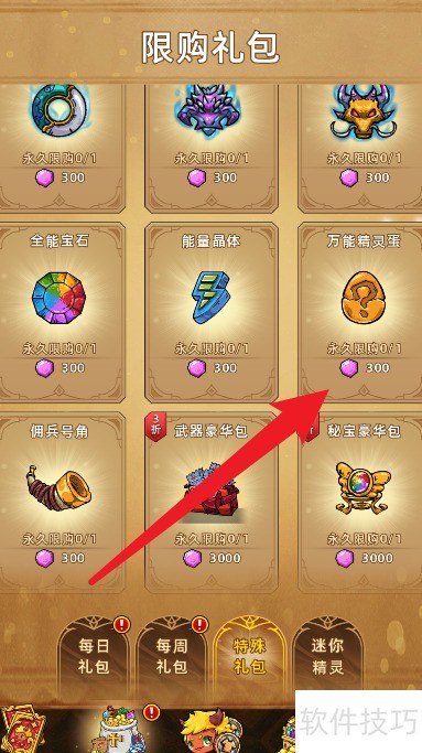 2、 进入商店特殊礼包,点击万能精灵蛋即可。