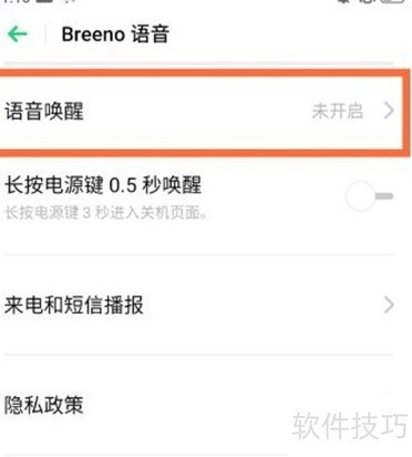 3、 进入Breeno语音设置,开启语音唤醒功能并进入其设置页面。