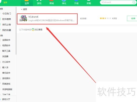 通过360软件管家在电脑上下载VCdromX,打开软件管家搜索VCdromX,找到后点击安装即可完成下载。