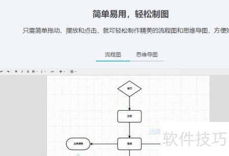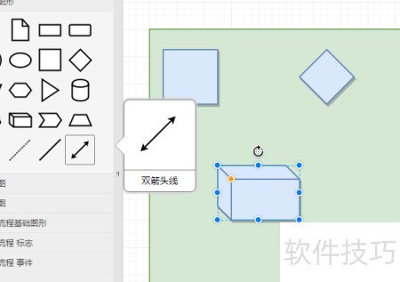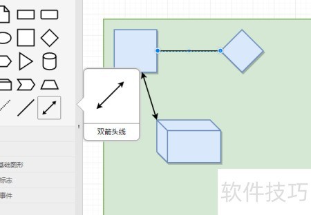 3、 首先构建流程图框架,从左侧面板选取所需图形和线条类型,拖拽至编辑区进行布局与连接,完成初步搭建。