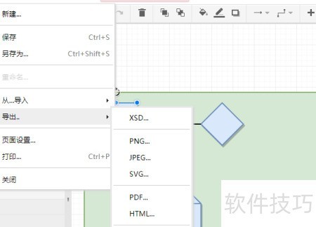 5、 仓库管理流程图绘制完成后,通常用于进储存操作,只需在左上角的文件选项中选择保存或导出即可完成。
