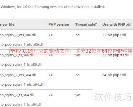 4、 访问微软官方下载页面 https://www.microsoft.com/en-us/download/details.aspx?id=20098,获取适用于PHP的SQL Server驱动程序。根据当前服务器中PHP环境的具体版本,参照示意图选择匹配的驱动安装包。由于实际环境中同时部署了PHP 5.6与PHP 7.0两个版本,因此需分别下载SQLSRV32.EXE和SQLSRV40.EXE两个驱动文件,以确保各版本PHP均可连接SQL Server数据库。值得注意的是,目前最新的SQL Server驱动程序仅支持到PHP 7.0.14,尚不兼容更高版本,例如刚发布的PHP 7.1.0,若系统已升级至该版本,则可能无法正常使用驱动功能。为保障数据库连接的稳定性与兼容性,建议在部署前仔细核对本地PHP版本与驱动支持范围,必要时可暂缓PHP版本更新,或关注微软后续发布的驱动更新动态,以便及时获得新版PHP的支持。