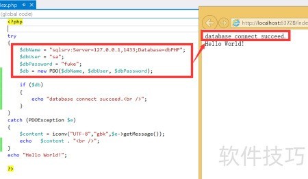 44、 至此,PHP通过PDO成功连接SQL Server数据库。