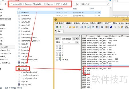 32、 将extension=php_pdo.dll前的分号删除,启用PHP的PDO扩展功能。