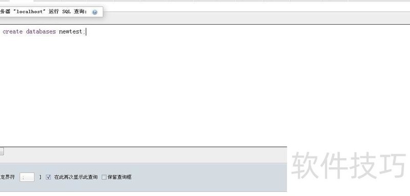 2、 用SQL语句创建数据库,例如:create database newtest;