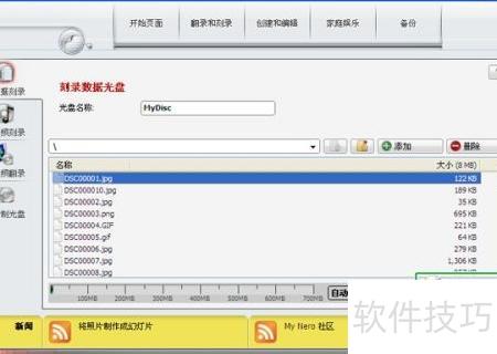 1、 所示,进入主界面后选择数据刻录,点击添加按钮即可。