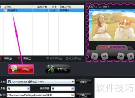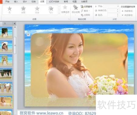 1、 使用PowerPoint软件,将下载的模板导入,把需刻录的照片进行排版并添加动画效果,调整完毕后保存文件即可完成制作。
