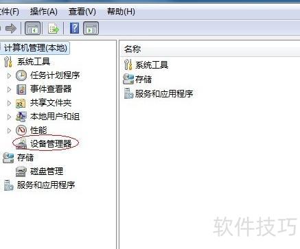 8、 在桌面我的电脑上右键点击管理,进入计算机管理界面后,于左侧选择设备管理器。