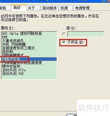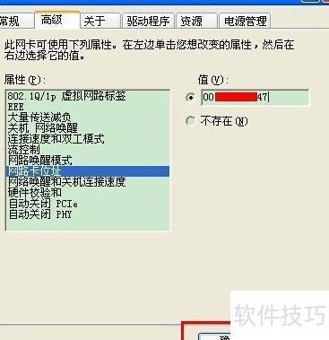 5、 进入高级设置页面,点击网路卡地址,右侧默认显示为不存在。