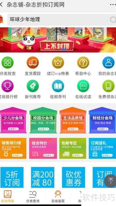 9、 通过杂志铺的分类导航,可按类别查找并选购所需杂志。