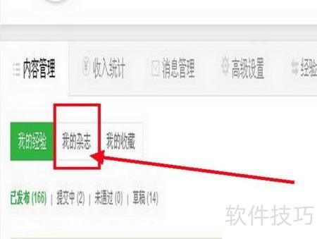 1、 在我的个人主页经验区找到我的杂志并点击,操作所示。