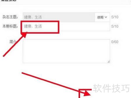 3、 点击后弹出对话框,需填写杂志标题与简介内容。
