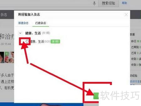 7、 选择自己撰写的经验,进入个人经验页面后,找到合适内容并打开,在经验右侧点击加入杂志即可完成操作。