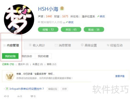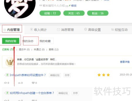 3、 首先,通过内容管理来整理我的经验,具体操作所示。