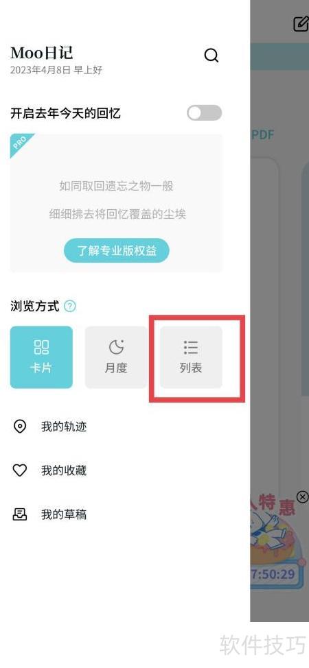 只需三步,轻松将Moo日记的浏览模式切换为列表视图,操作简单便捷。