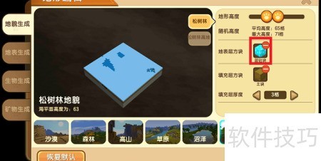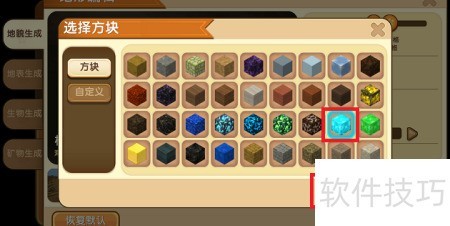 8、 选择地形图后,点击地表层方块相邻的格子即可。