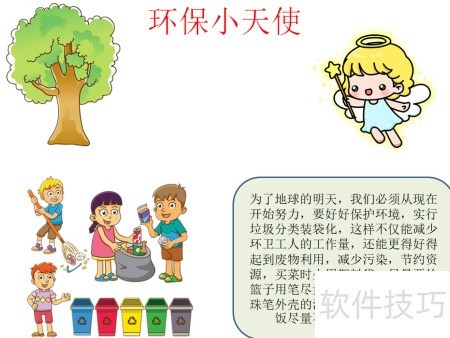 6、 在右上角添个小天使,环保主题手抄报便完成了。