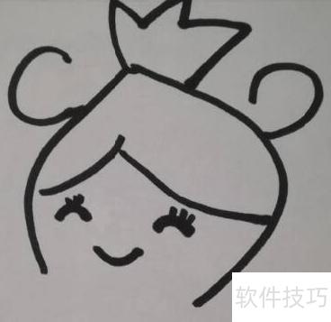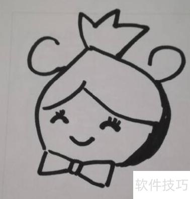2、 画出眼睛、嘴巴和头发。