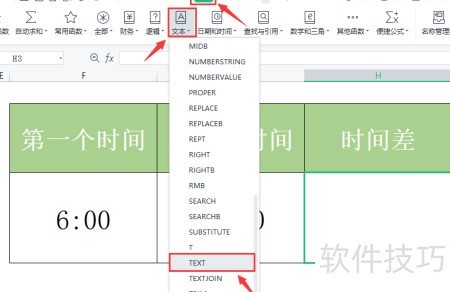 4、 在H3单元格中,依次点击公式和文本,选择TEXT函数。