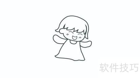 1、 先勾勒小天使的外形,包括头发、脸庞、服饰及甜美表情。