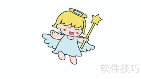 3、 画出小天使的双腿、头顶光环及手中的仙女棒。