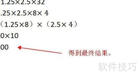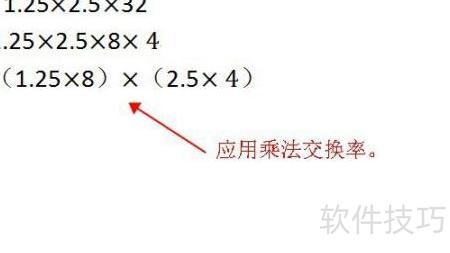 运用乘法交换律,将1.25×2.5×32重新组合,简便计算得100。