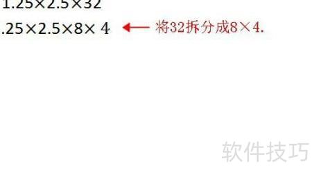 1、 把32分解为8乘以4,原式变为1.25乘2.5再乘8乘4。