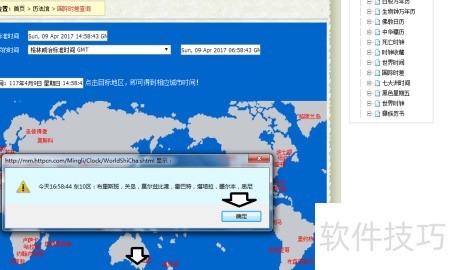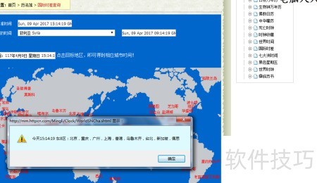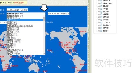 6、 通过点击右侧下拉箭头,在菜单中选择目标地区,即可查看该地的当前时间。