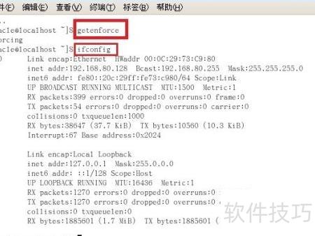 7、 输入getenforce、ifconfig等命令后,均可正常执行。