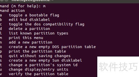 31、 Fdisk提供多种命令,其中专家命令需先执行x命令进入。更多详细信息可通过输入man fdisk查看其手册页获得。