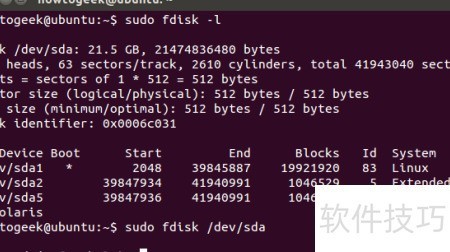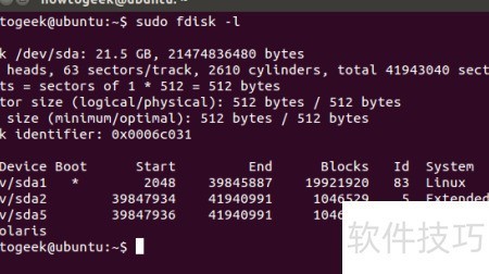 4、 使用fdisk -l命令可查看系统中的所有分区信息。