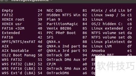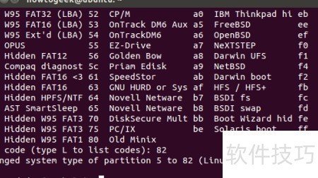 22、 若要更改其类型,可使用t命令并输入对应分区编号即可完成操作。