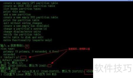 13、 分区号和起始扇区均无需填写,直接回车采用默认设置即可。