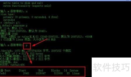 17、 使用p命令可查看该磁盘的分区信息。