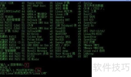 21、 输入t命令并指定新的类型代码,即可修改新建分区的分区类型。