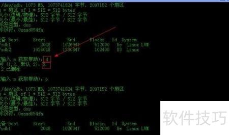 23、 若新建分区大小不当,可将其删除后重新创建。使用d命令删除分区,输入d及对应分区号即可完成操作。