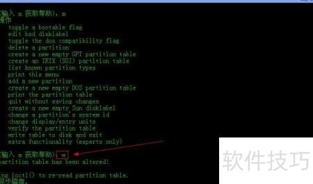 24、 写入分区表并保存修改的命令