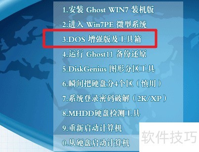 1、 启动电脑并放入含引导菜单的系统安装光盘,进入光盘引导后选择DOS增强工具,即可进入增强模式下的DOS操作界面。