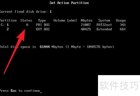 22、 首个分区已激活,状态显示为A,表明活动分区配置成功。
