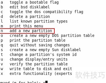 3、 执行fdisk命令并选择/dev/sdb,随后输入m查看帮助菜单。