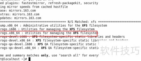 10、 使用yum search xfs命令搜索可安装的软件包名称