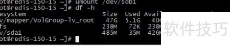 2、 卸载新区域的挂载点,若/etc/fstab中有相关配置,需一并删除。