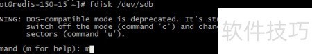 3、 使用fdisk /dev/sdb命令,注意不是sdb1,输入m后按回车键。